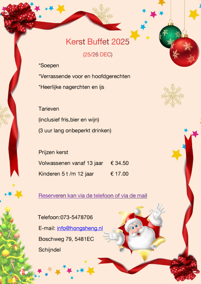 Of u nu liefhebber bent van Teppanyaki-, wok- of traditionele Aziatische gerechten, Hong Sheng in Schijndel heeft een uitgebreide menukaart met 75+ gerechten uit Azië. Met ons all-you-can-eat formule kunt u onbeperkt genieten van deze gerechten. Dagelijks kunt u genieten van ons à la carte concept of samen met uw geliefde thuis genieten via onze afhaal afdeling met traditionele Chinees - Indische gerechten.